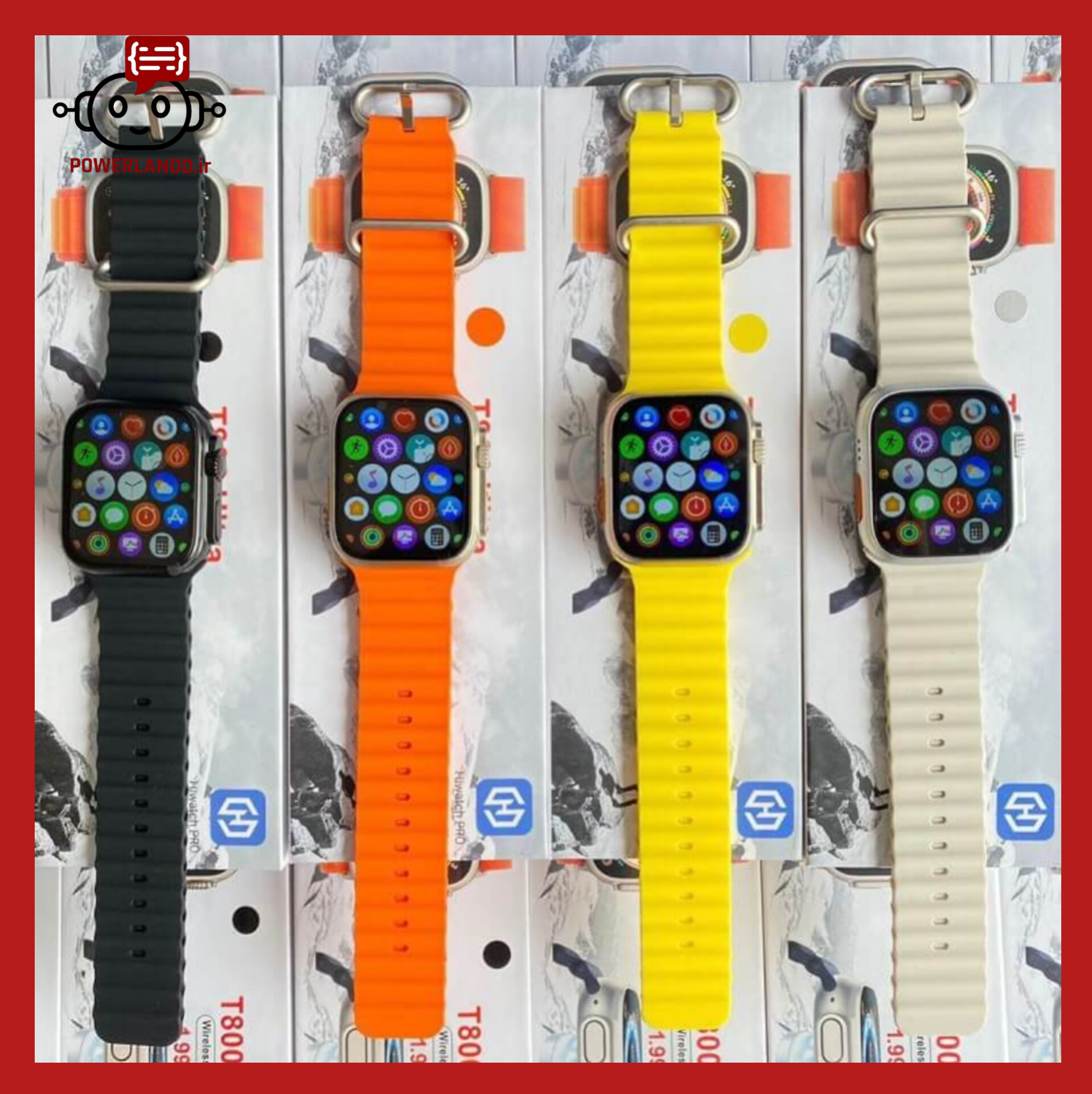 T800 Ultra یکی دیگر از کلون های جدید اپل واچ اولترا 2022 است که با قیمت بسیار ارزان در بازار موجود است. این یک ساعت هوشمند اسپرت است که طراحی مربعی با صفحه نمایش LCD بزرگ 1.99 اینچی دارد و به چندین ویژگی از جمله نمایشگر ضربان قلب، مانیتور اکسیژن خون SPO2، حالت های Multisport، ضد آب IP67 و پشتیبانی از تماس بلوتوث مجهز است این ساعت هوشمند مربع شکل و به ابعاد 4/5×38/5×1/4 است وزن آن 50 گرم و در رنگ های متنوع مشکی زرد نارنجی و نقره ای موجود میباشد نمایشگر lcd واندازه صفحه نمایش 1.99 اینچ و وضوح صفحه نمایش 250×285 پیکسل است